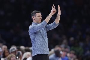 “显然,比赛结果取决于几个关键球。他们比我们多抓住了几次机会。从我们可以控制的角度来看,我们在攻防两端的执行都还不够干净利落。”