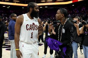 赛后,美国知名饶舌歌手Travis Scott打断了正在采访的哈登,从哈登手中抢过话筒在全美观众前大喊: